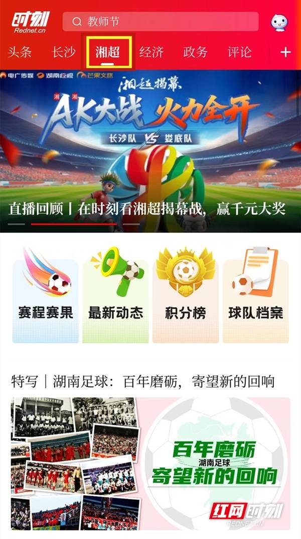 从湘北到湘南,呼声四起,为城而战!立即上时刻新闻APP,关注“湘超”频道,为你支持的球队助力!参与助威榜投票,还有机会亲临现场、参与球员见面会,解锁更多专属福利!