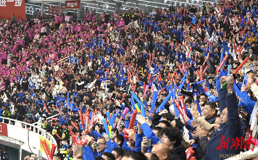 12月27日晚,球迷们在欢呼庆祝。当晚,2025湖南省足球联赛决赛在长沙贺龙体育场打响,永州队(蓝)与常德队展开终极较量,最终永州队以1:0战胜常德队。 湖南日报全媒体记者 童臻熙 摄