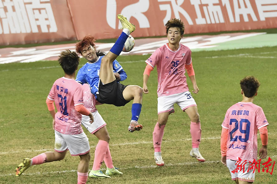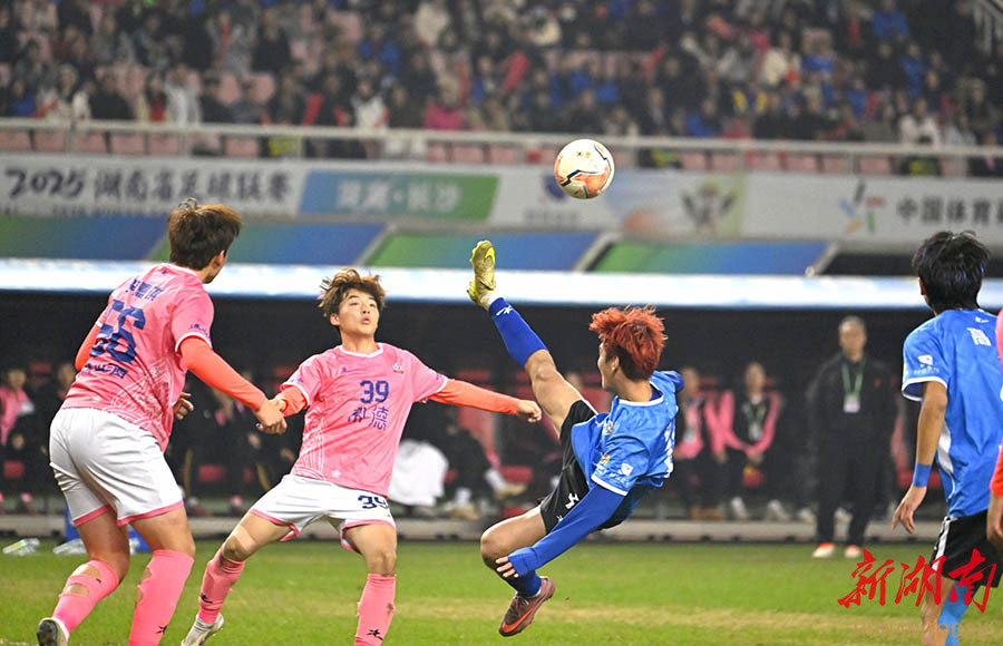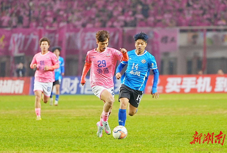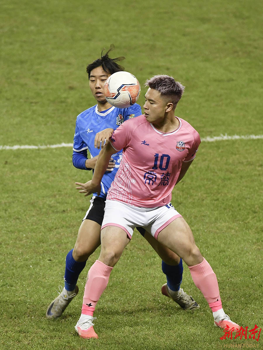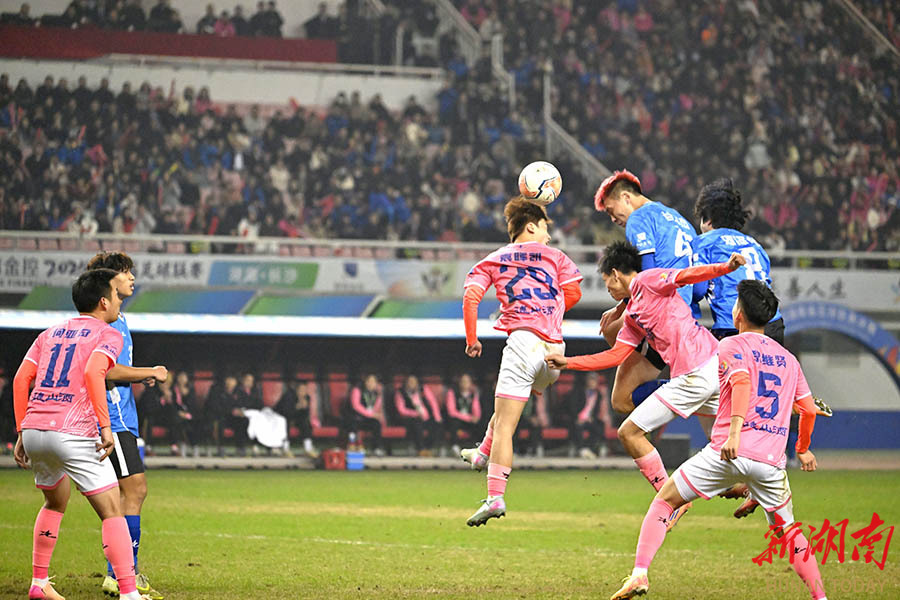 12月27日晚,2025湖南省足球联赛决赛在长沙贺龙体育场打响,永州队与常德队展开终极较量。 湖南日报全媒体记者 郭立亮 摄