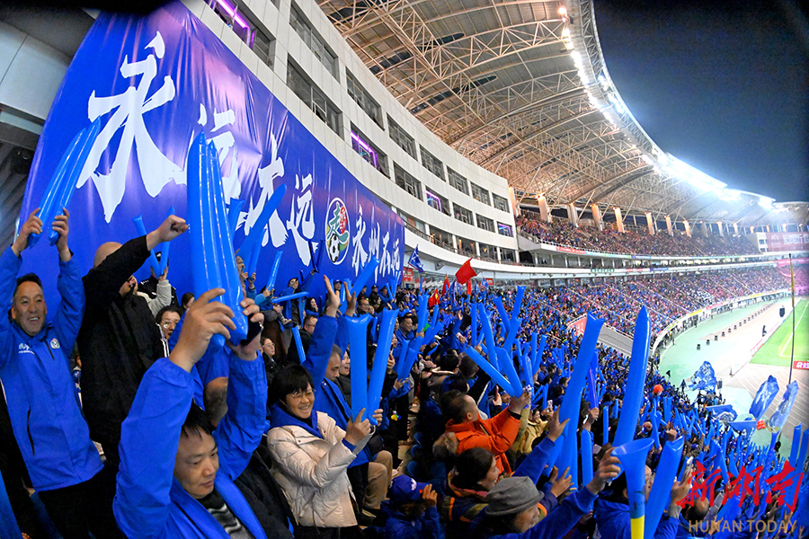 12月27日晚,永州队球迷在开场前热情欢呼,为球队加油助威。当晚,2025湖南省足球联赛决赛在长沙贺龙体育场打响,永州队与常德队展开终极较量。 湖南日报全媒体记者 郭立亮 摄