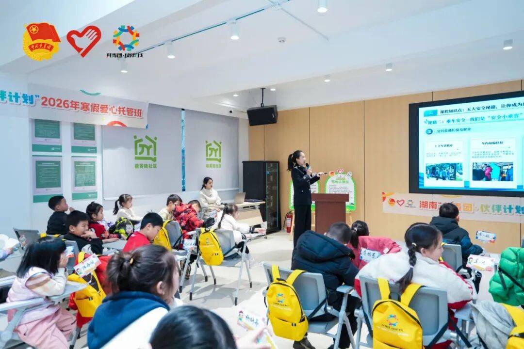 在湖南,团省委、省少工委在全省14个市州开设150个免费省级示范爱心托管班,实施统一宣传发动、统一培训管理、统一示范课程、统一购买保险、统一定制学习包“五个统一”的工作模式。联合省交警总队、省林业厅、省水利厅等省直单位部门制作《安全“童”行》《小鸟的奇妙家园》《守护家乡母亲河》等7堂示范课,讲好交通安全、爱鸟护林、守护一江碧水的故事。其中交警化身志愿者在托管班讲授《平安‘童’行》,以孩子为纽带传递安全理念,让孩子的暖心叮嘱提醒家长重视交通安全。