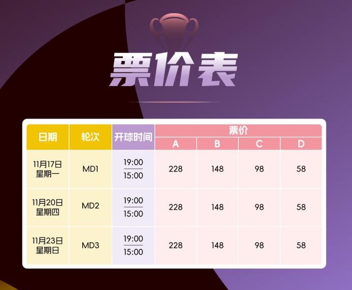 为方便广大球迷到场助威,赛事组委会设置了多档票价,满足不同观众的观赛需求。小组赛门票分为A、B、C、D四档,价格从58元至228元不等。球迷可登录大麦网官方售票平台选购球票。(湖北日报全媒记者 胡雨薇 通讯员 张黎 田卉)