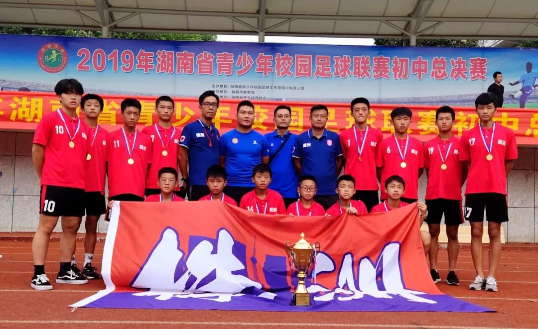 2019年湖南省青少年校园足球联赛初中总决赛在于8月21日至28日在湖南益阳进行,株洲男子代表队征战甲组比赛,同在甲组的队伍有:娄底、湘潭、益阳、郴州和怀化。在首日进行的基本功测试项目中,株洲男子代表队以微弱的差距获得第二名,由于比赛成绩占总成绩的70%,所以预示着株洲队必须在接下来的比赛中拿到冠军才有可能夺得本次比赛最终的总冠军。全队齐心协力顶住压力,经过激烈的角逐,最终株洲男子代表队以4胜1负的成绩成功拿下比赛项目的冠军,从而拿下本次比赛的最终总冠军。