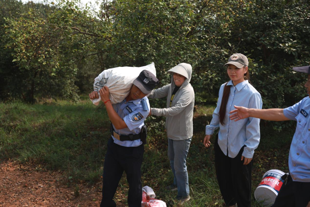 国庆中秋期间,邵阳县蔡桥乡的油茶林迎来采收的关键时期。邵阳县公安局蔡桥派出所依托“田间警务”主动作为,组织民辅警深入田间地头帮农户采摘果实,强化巡逻防控、防范打击偷盗行为,化身“助农员”与“守护者”。面对群众的连连夸赞,民警笑着说:“咱守护平安就是要扎进地里,您丰收,我们才安心。”