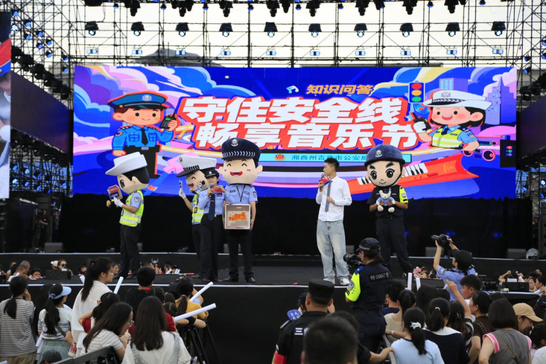 10月2日、3日,“神秘湘西音乐节” 在湘西吉首开场,湘西州公安局、吉首市公安局巧妙借助音乐节人流高峰开展安全宣传。舞台上,民警围绕防范电信诈骗、交通安全等问题开展有奖问答;舞台外,民警精心布置了打卡区和咨询台,向过往群众讲解法律法规并答疑解惑。