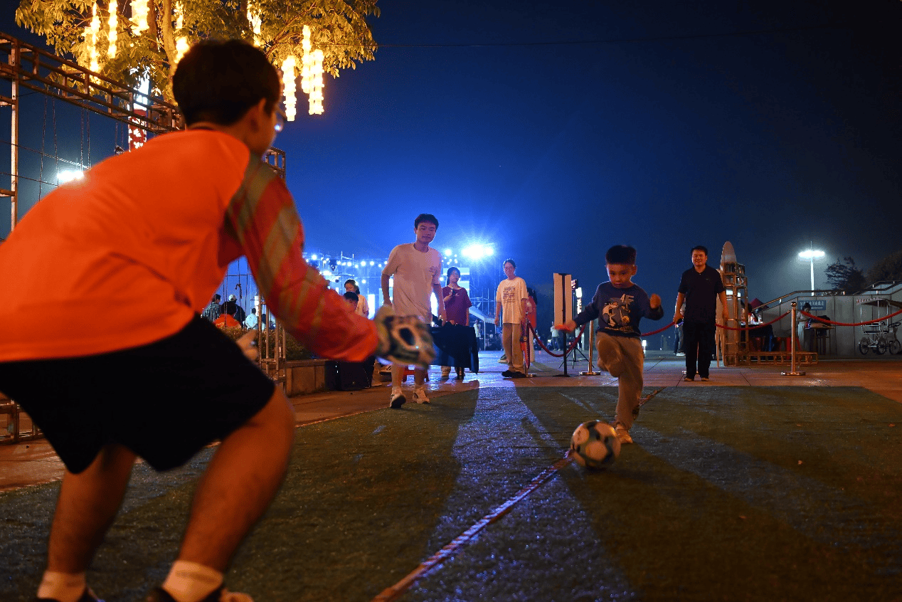 “‘湘超’的集聚效用,将大量市民吸引到邵阳体育中心,我们也把文明知识送到市民身边。”文明实践集市项目负责人刘军风介绍,结合足球运动,通过有趣的互动,达到润物细无声的效果。