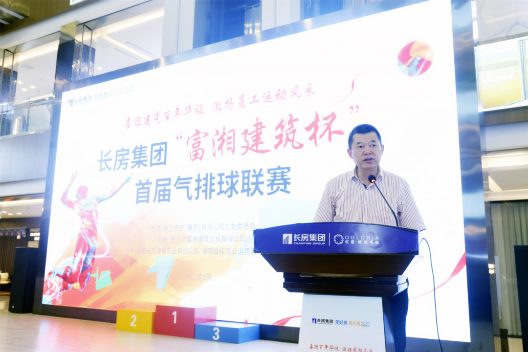2021年5月15日下午,由长房集团工会主办,长沙市富湘建筑工程有限公司冠名,湖南长房海客实业有限公司、湖南盈峻商业运营管理有限公司协办的长房集团“富湘建筑杯”首届气排球联赛在长房集团红星欧丽洛雅环球家居博览中心闭幕。集团党委书记、董事长,集团党委委员、董事、副总经理易学良,集团党委委员、董事、副总经理潘彩炼,集团党委委员、副总经理熊棒出席闭幕式并作为运动员参加比赛。仪式由集团党委委员、纪委书记、监察专员刘昊持。
