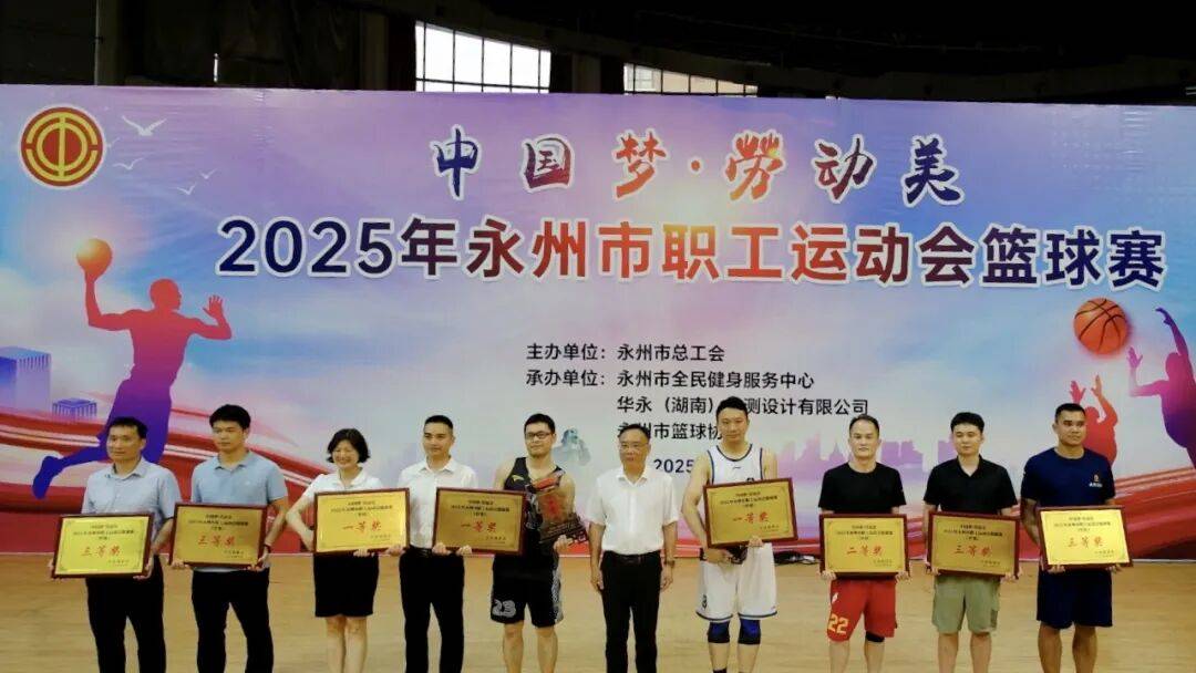 1.2025年永州市职工运动会篮球赛。5月12日-20日,“中国梦·劳动美”2025年永州市职工运动会篮球赛在市体育中心举行,这是市总工会部署的庆祝“五一”国际劳动节和中华全国总工会成立100周年的系列活动之一,旨在丰富职工业余文化体育生活,提升职工篮球竞技水平,激发全民健身热情。活动吸引了全市各机关、企事业单位的45支队伍、560名职工运动员参加。经过11天的紧张激烈而又精彩纷呈的角逐,市自然资源和规划局、市公安局、市教育局代表队获得甲组一等奖,市城发集团一队、永州职业技术学院代表队获得乙组一等奖,市政府办、中国人民财产保险公司永州分公司代表队获得丙组一筹奖。