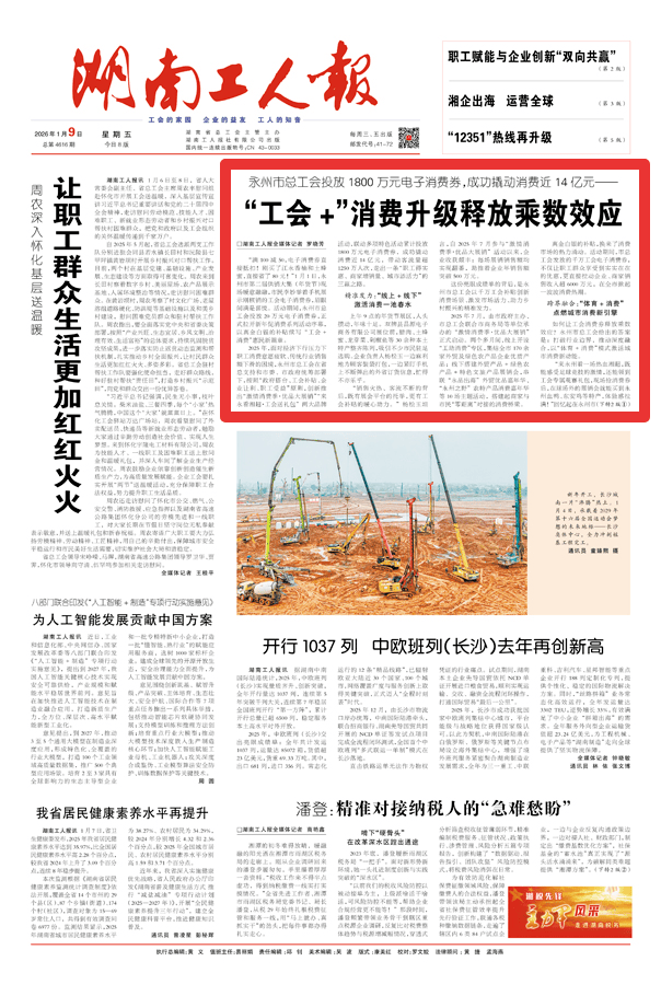 湖南工人报头版头条推介永州市总工会投放1800万元消费券,“工会+”消费升级释放乘数效应