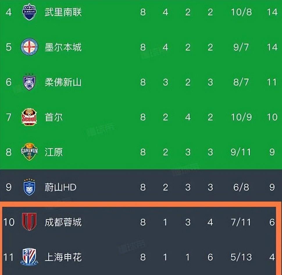 上海申花1胜1平6负,其中一场比赛开场仅23秒就送出点球,创造了本届赛事最快丢球纪录。